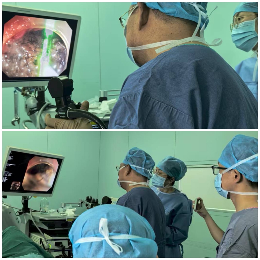 孟祥军主任医师带领团队成员为患者进行内镜下胃巨大毛发结石取出术
